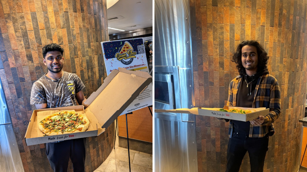 - Vegan Pizza Winner: Pranav Tavildar - General Tso base topped with crispy tofu, caramelized onions, broccoli, peppers, vegan slice chao cheese, sesame seeds, and cilantro